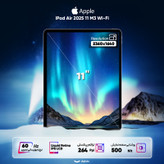 آیپد ایر ۱۱ اینچی ۲۰۲۵ با تراشه M3، قدرت و کارایی در سطح حرفهای را با قیمتی مناسبتر نسبت به مدلهای پرو ارائه میدهد. این تبلت با بدنهی تمام آلومینیومی، ضخامت بسیار کم ۶.۱ میلیمتری و وزن ۴۶۰ گرمی، همچنان زیبا، سبک و قابل حمل است. حسگر اثر انگشت Touch ID نیز روی دکمهی پاور قرار گرفته است. صفحهنمایش ۱۱ اینچی Liquid Retina با رزولوشن ۲۳۶۰ در ۱۶۴۰ و تراکم ۲۶۴ پیکسل بر اینچ مجهز به پنل IPS LCD و روشنایی ۵۰۰ نیت، تصاویری شفاف و باکیفیت را به نمایش میگذارد و از فناوری True Tone برای تنظیم خودکار رنگ پشتیبانی میکند. قلب تپندهی این تبلت، تراشهی قدرتمند M3 اپل با ۸ هستهی پردازشی، ۹ هستهی گرافیکی و ۱۶ هستهی عصبی است که عملکردی فوقالعاده سریع را در اجرای برنامههای سنگین، بازیهای گرافیکی و کارهای مبتنی بر هوش مصنوعی تضمین میکند. این تبلت با ۸ گیگابایت رم یکپارچه و حافظهی داخلی ۱۲۸ تا ۱۰۲۴ گیگابایت عرضه میشود. پورت USB-C (با پشتیبانی از DisplayPort)، وایفای 6E و بلوتوث 5.3، اتصالات آن را تشکیل میدهند. پشتیبانی از Apple Pencil Pro و Magic Keyboard (فروش جداگانه) نیز قابلیتهای آن را افزایش میدهد. دوربینهای ۱۲ مگاپیکسلی پشت و جلو (با Center Stage) برای عکاسی روزمره و تماسهای تصویری باکیفیت مناسب هستند. باتری ۲۸.۹۳ واتساعتی آن نیز تا ۱۰ ساعت شارژدهی دارد. در مجموع، آیپد ایر ۱۱ اینچی M3 یک تبلت قدرتمند، همهکاره و با ارزش خرید بالاست که برای دانشجویان، طراحان، کاربران حرفهای و هر کسی که به دنبال تجربهی اپل با عملکرد بالا و قیمت مناسبتر از پرو است، گزینهای ایدهآل محسوب میشود.